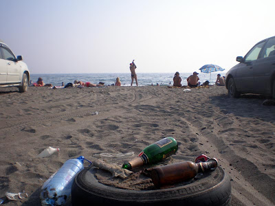 Каждый выходной выезжаю на какой-нибудь пляж (коих вокруг города великое множество) со своей любимой и друзьями. Недалеко от Находки расположен пляж в районе поселка Волчанцы, где мы и побывали в минувшее воскресенье. Жаль, что не удалось понырять за песчанкой (один из множества съедобных моллюсков, обитающих в наших краях) - вода очень мутная, волны большие. В "Волчанцах" сейчас очень много отдыхающих. Люди едут со всего Дальнего Востока, но основные туристы - хабаровчане.