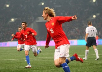 Бондаренко противостоит защитнику сборной Марокко в товарищеском матче и, похоже, нарушает правила :)